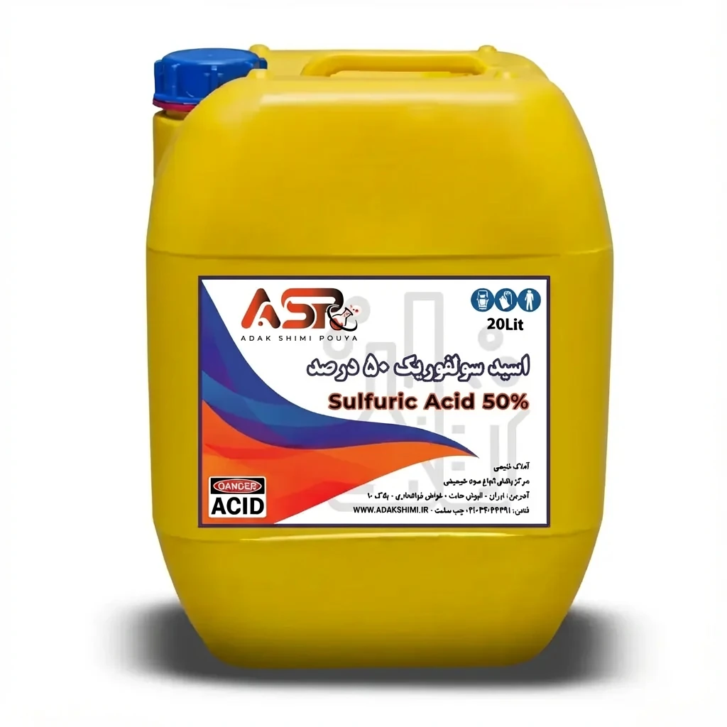 اسید 50 درصد گرید : صنعتی بسته بندی : گالن 5 لیتری گالن 20 لیتری تانکر 1000 لیتری نام های مشابه: اسید 50 - اسید سولفوریک 50 درصد - سولفوریک 50 درصد - اسید رقیق